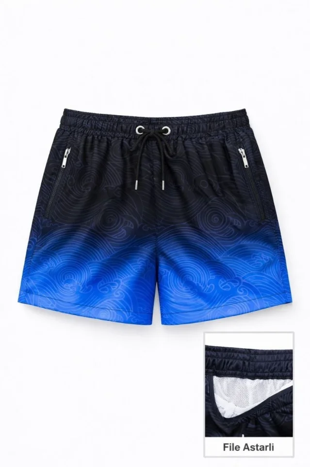 Deniz Şortu Fermuarlı Cepli File Astarlı Hızlı Kuruyan Premium – Mavi