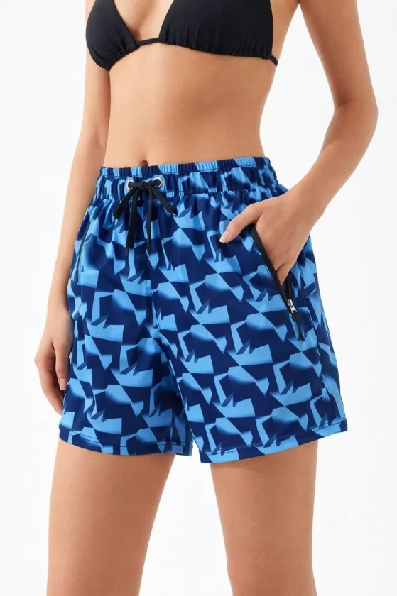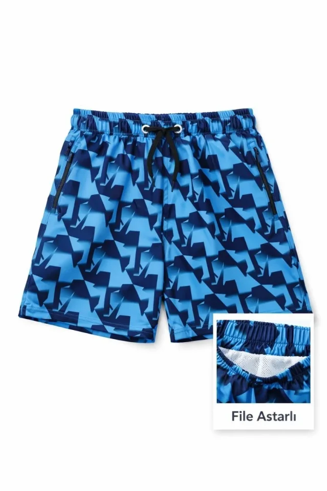 Deniz Şortu Fermuarlı Cepli File Astarlı Hızlı Kuruyan Premium – Mavi