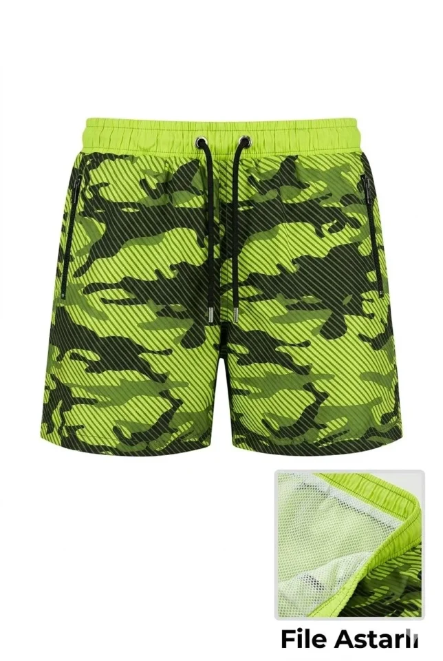Deniz Şortu Fermuarlı Cepli File Astarlı Hızlı Kuruyan Premium – Neon Yeşili