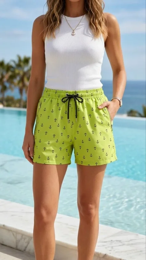Deniz Şortu Fermuarlı Cepli File Astarlı Hızlı Kuruyan Premium – Neon Yeşili Modelin Ölçüleri: Boy:165, Kg:55, Göğüs:90, Bel:72, Kalça: 100 Modelin üzerindeki ürün M/38 bedendir