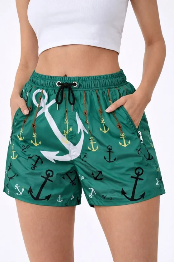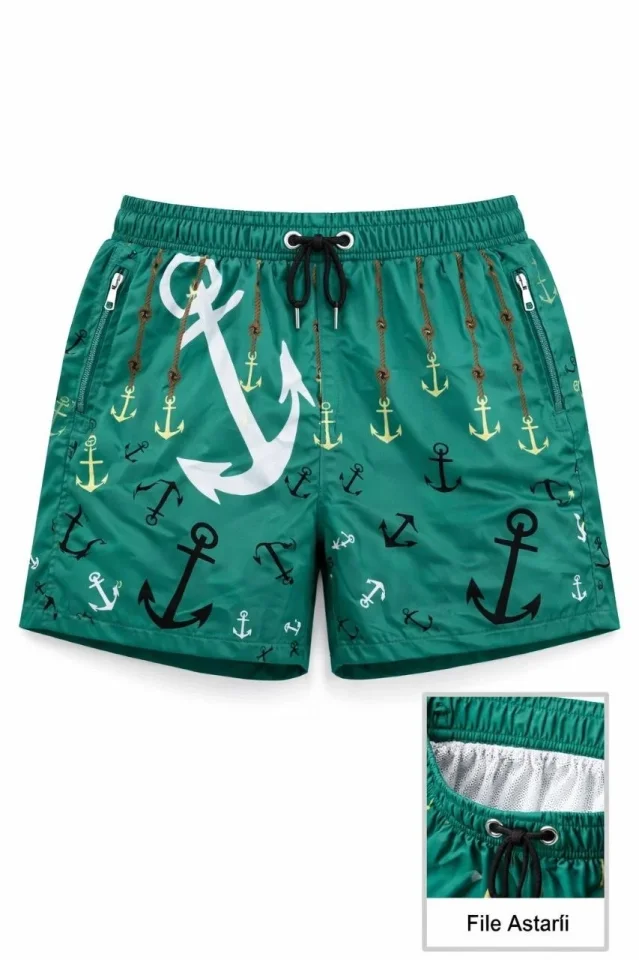 Deniz Şortu Fermuarlı Cepli File Astarlı Hızlı Kuruyan Premium – Su Yeşili