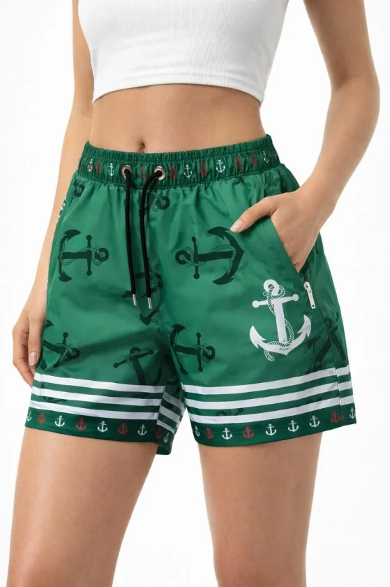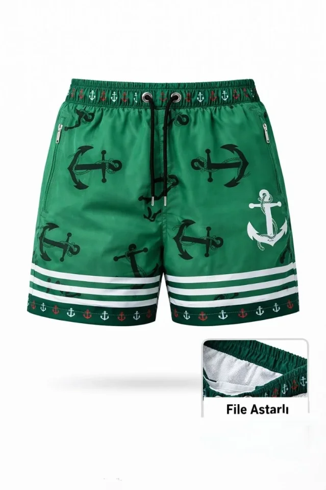 Deniz Şortu Fermuarlı Cepli File Astarlı Hızlı Kuruyan Premium – Yeşil