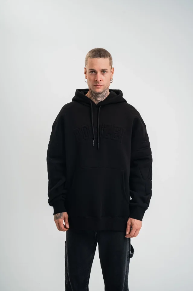 Double Oversize Kapşonlu Nakışlı SweatShirt – Siyah