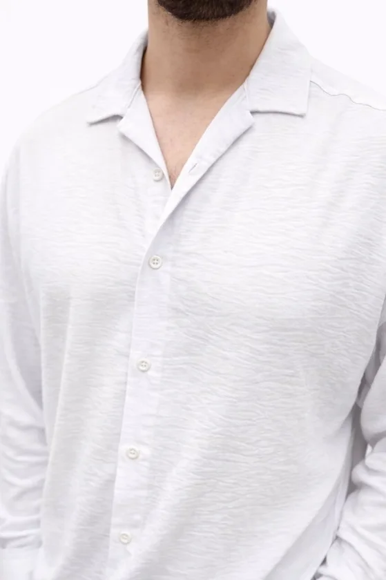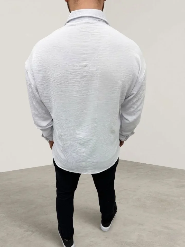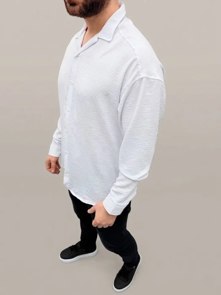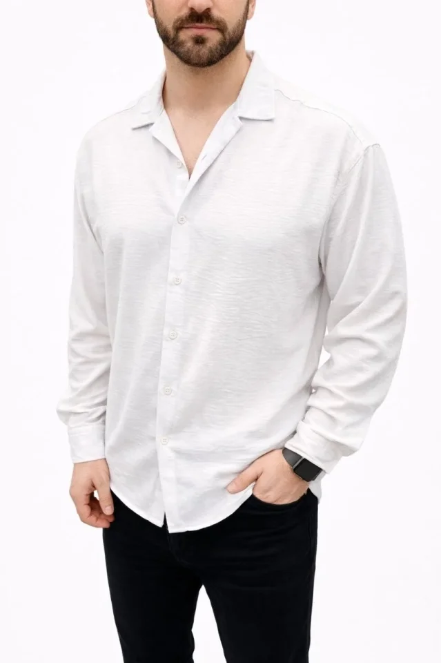 Erkek Aerobin Kumaş Oversize 4 Mevsim Uzun Kollu Rahat Kalıp Gömlek – Beyaz