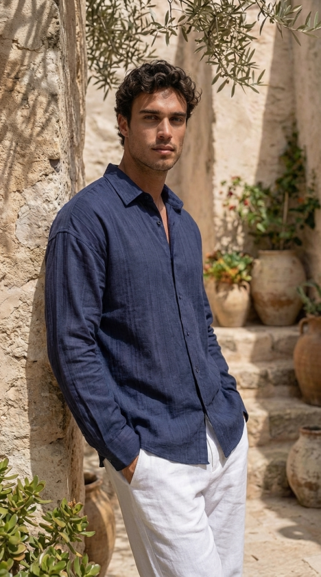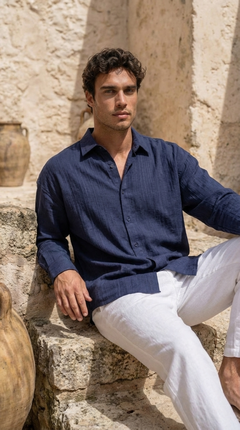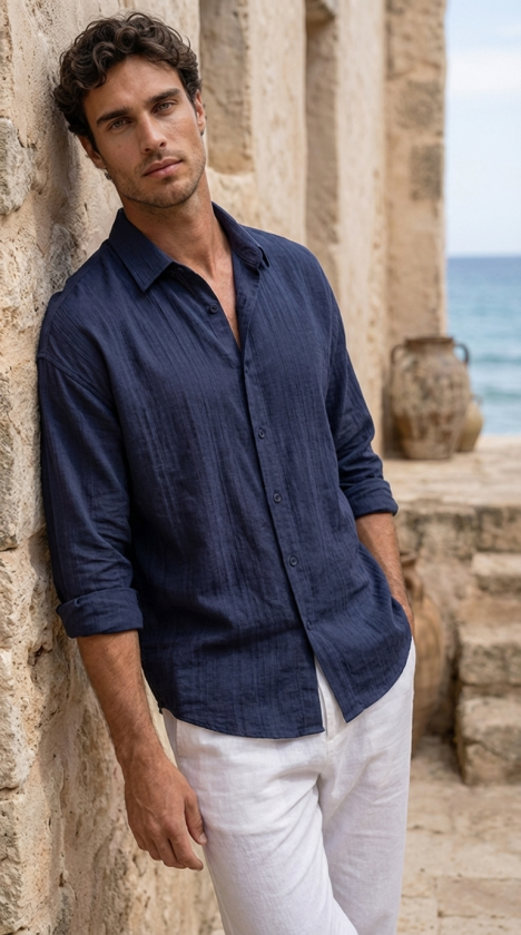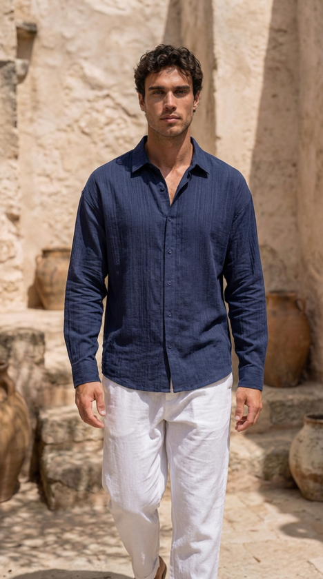 Erkek Armürlü Yarım Oversize Müslin Gömlek