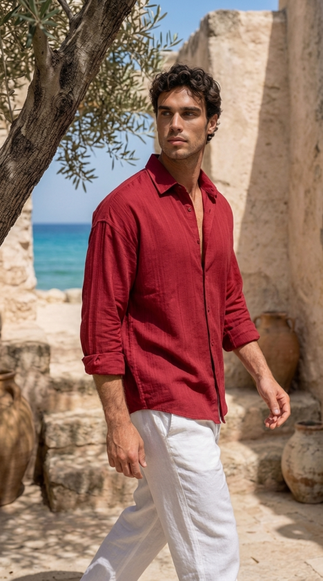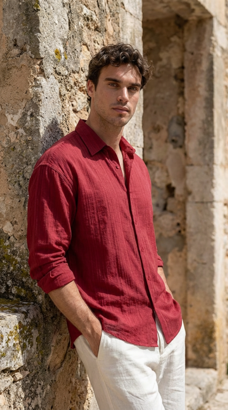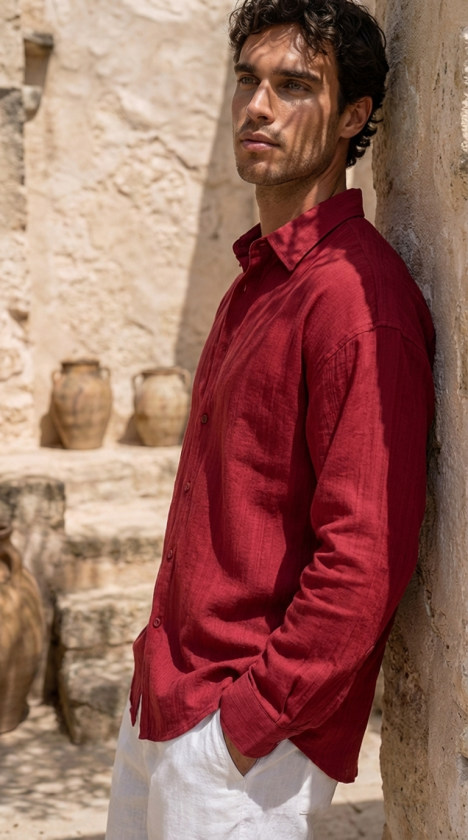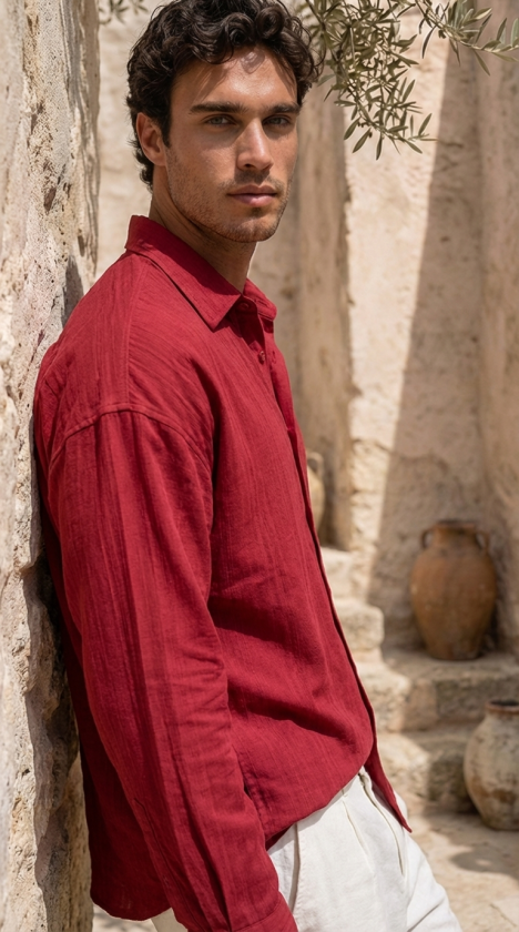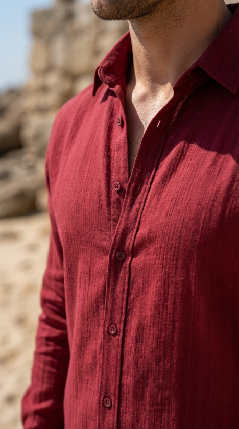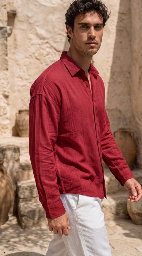 Erkek Armürlü Yarım Oversize Müslin Gömlek