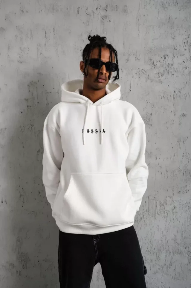 Erkek Astronot Baskılı Kapüşonlu Sweat – Beyaz
