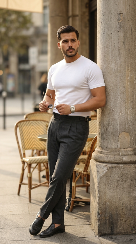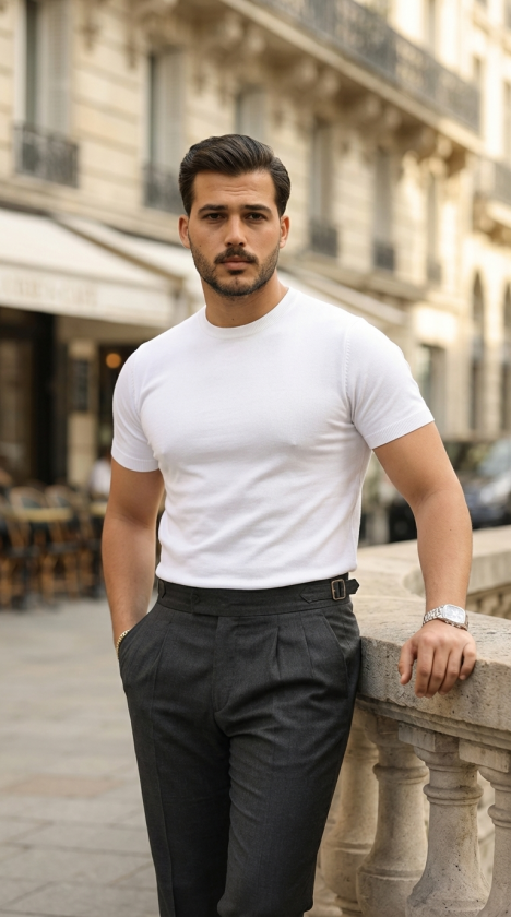 Erkek Basic Bisiklet Yaka Kısa Kollu Triko Tişört – %100 Pamuk Akrilik