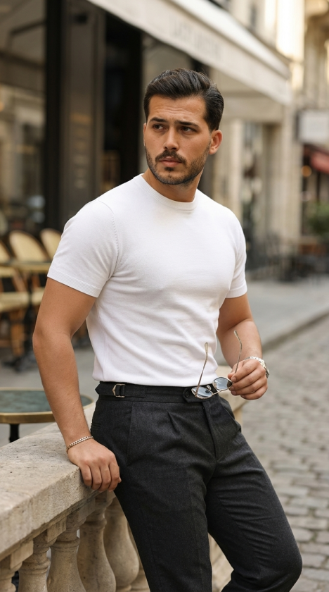 Erkek Desenli Kısa Kollu Triko Tişört – %100 Pamuk Akrilik