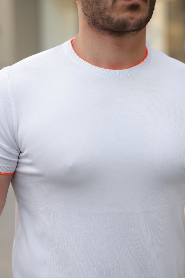 Erkek Renk Bloklu Bisiklet Yaka Kısa Kollu Triko Tişört