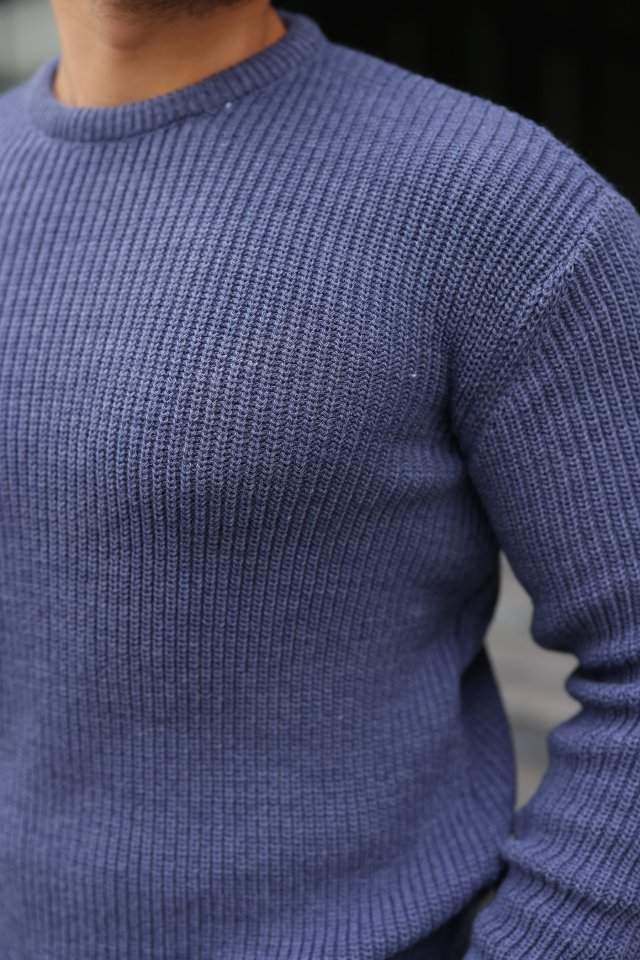 Erkek Balıkcı Yaka Bağazlı Triko Kazak Pamuklu Kalın Fitilli Dokuma, Regular Fit Uzun Kollu Kışlık Model – Lacivert