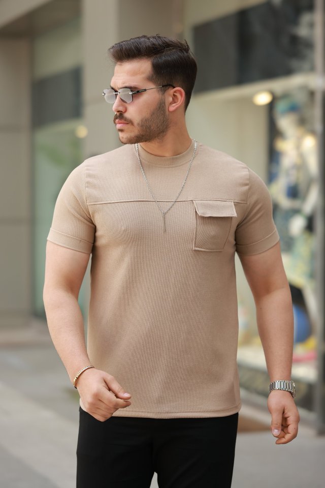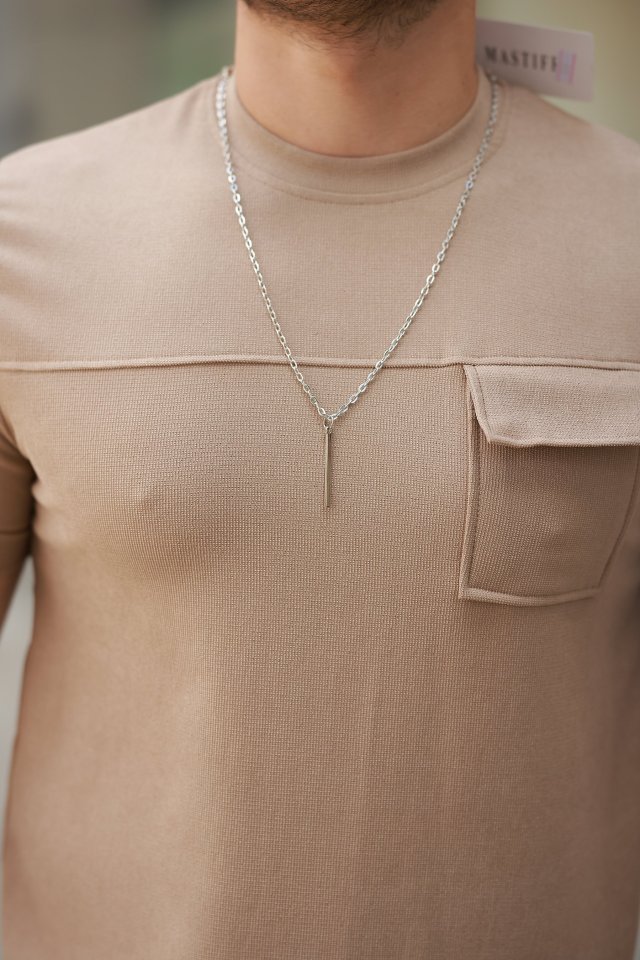Erkek Cepli Kolyeli Kısa Kollu örme Kumaş Tişört