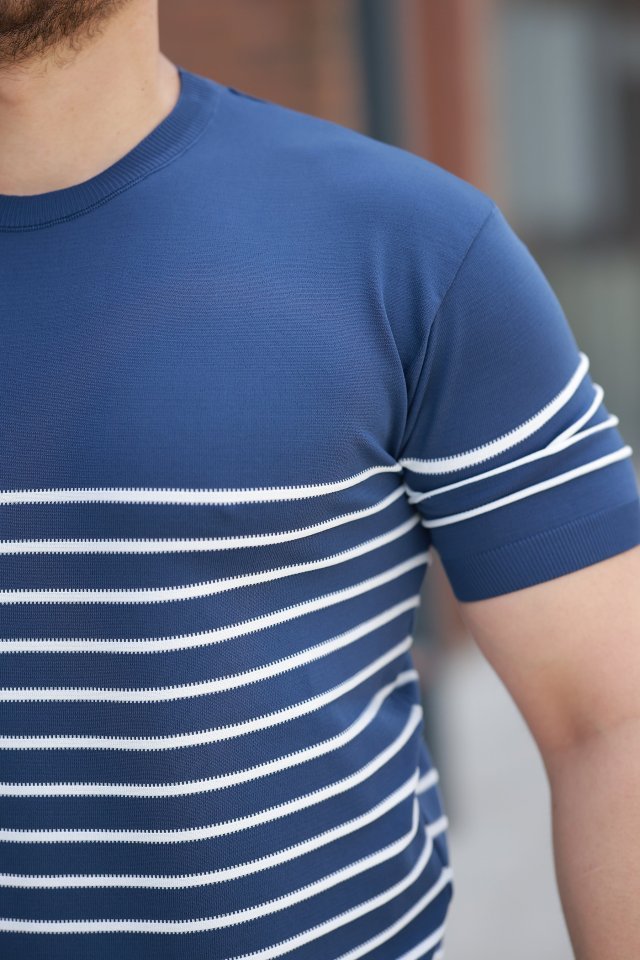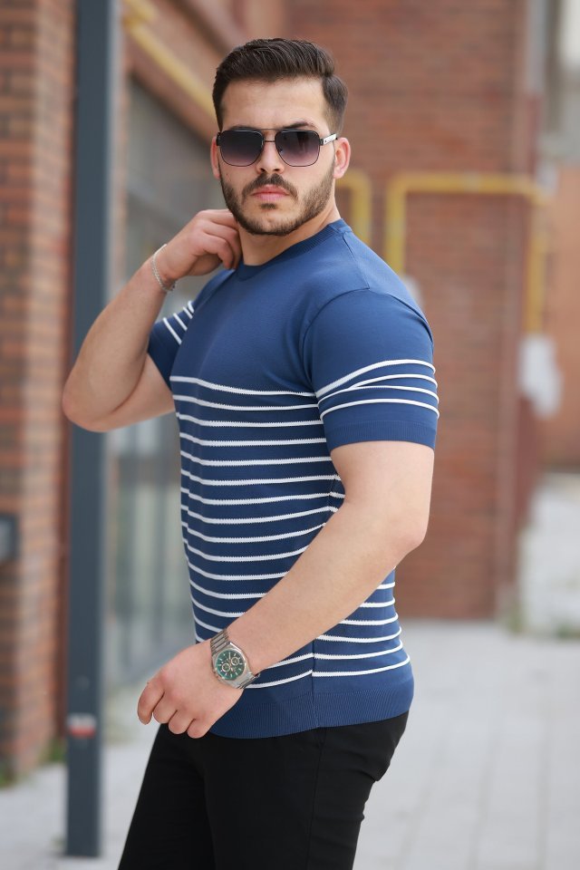 Erkek Desenli Kısa Kollu Triko Tişört – %100 Pamuk Akrilik
