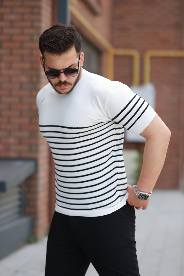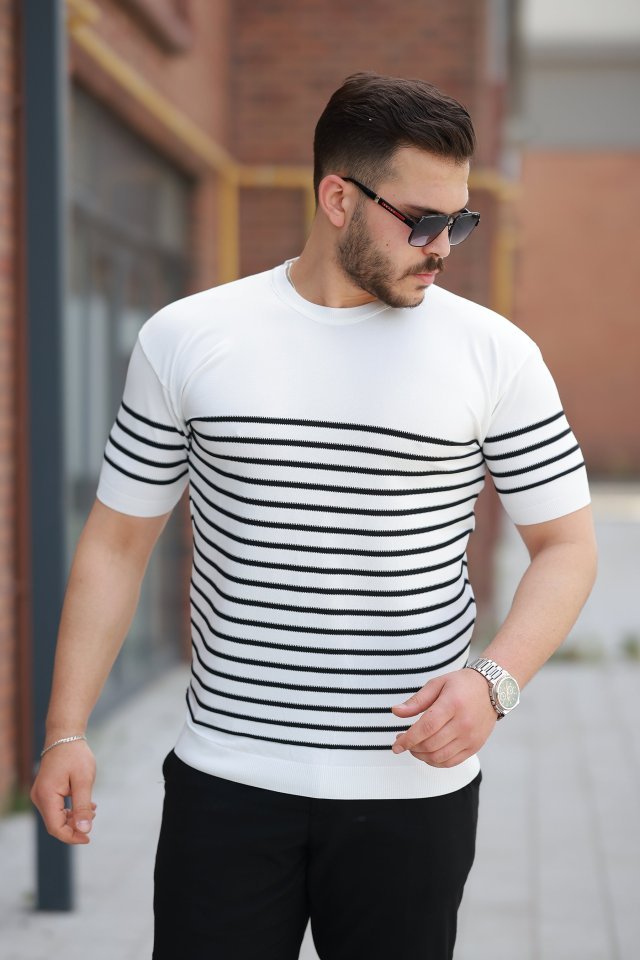 Erkek Örgü Desenli Renkli Kısa Kollu Triko Tişört