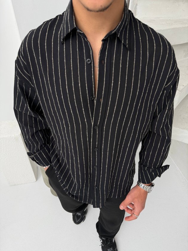 Erkek Çizgili Keten Gömlek