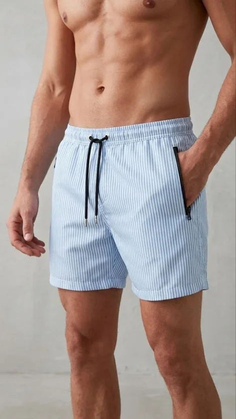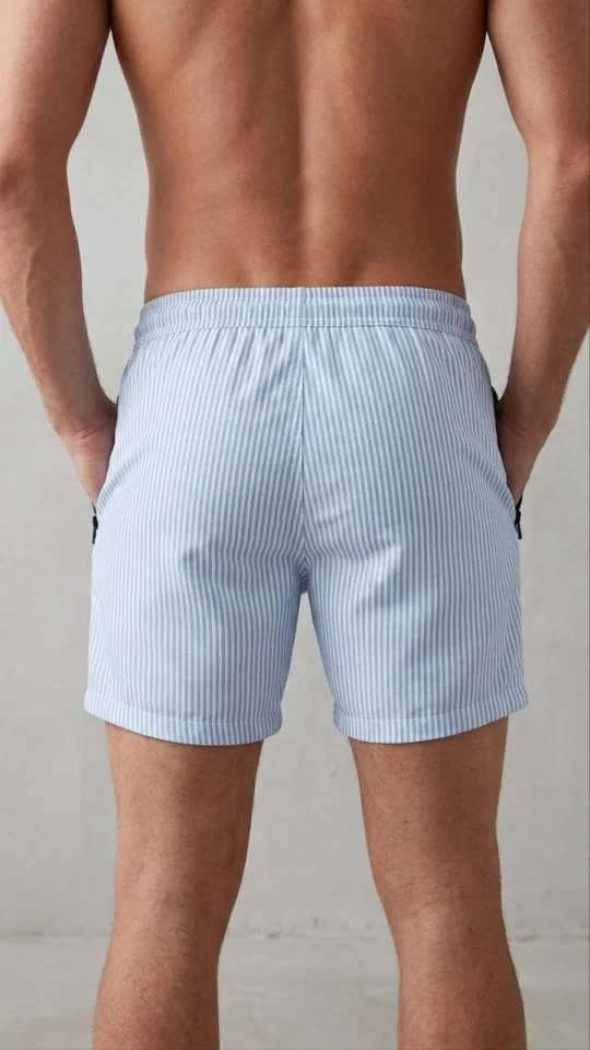 Erkek Deniz Şortu Fermuarlı Cepli File Astarlı Hızlı Kuruyan Premium – Bebek Mavisi