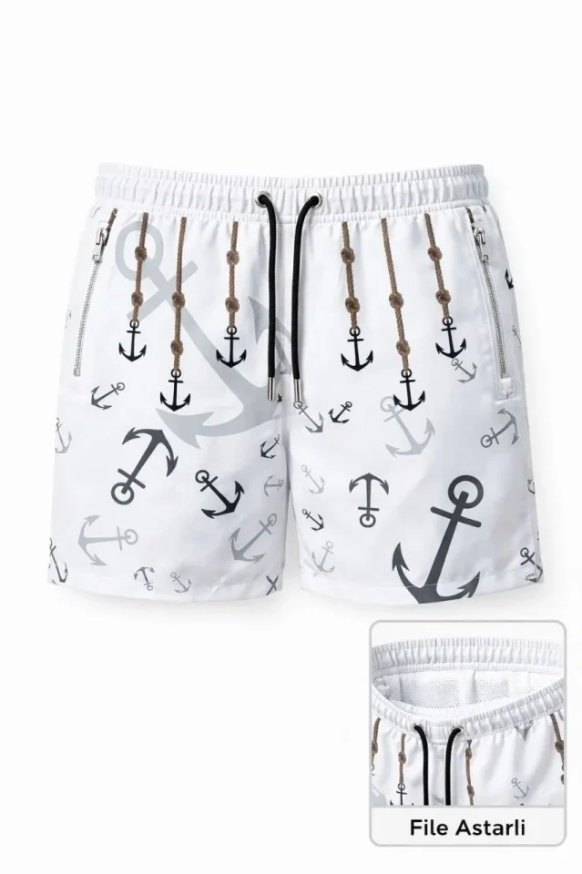 Erkek Deniz Şortu Fermuarlı Cepli File Astarlı Hızlı Kuruyan Premium – Beyaz