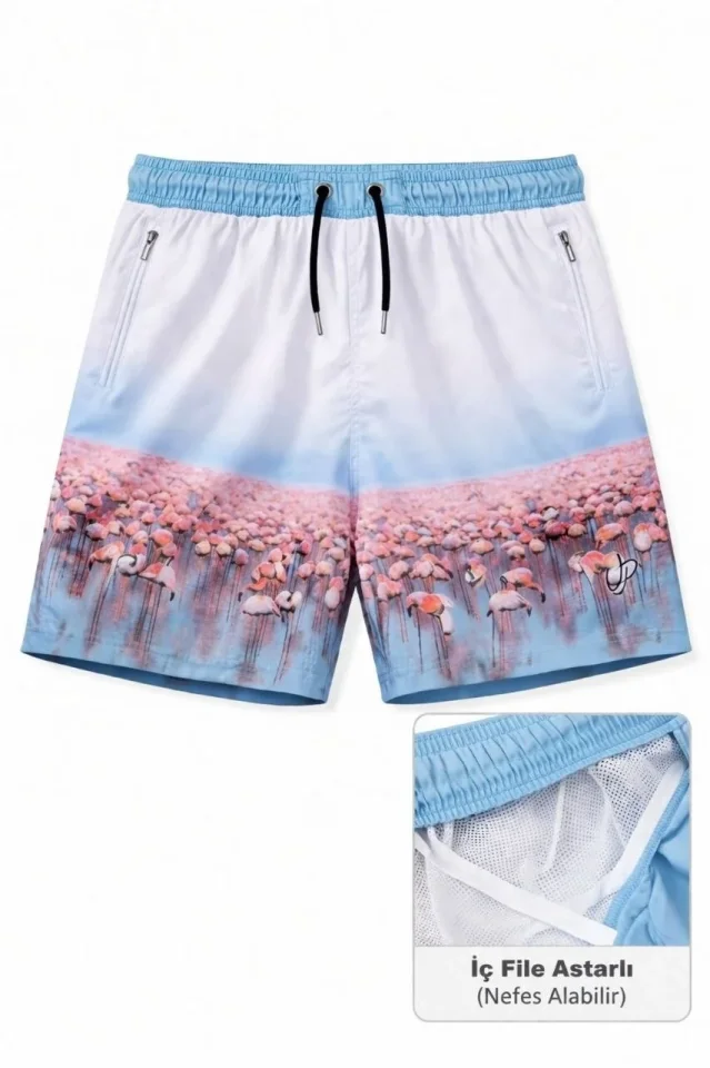 Erkek Deniz Şortu Fermuarlı Cepli File Astarlı Hızlı Kuruyan Premium – Bebek Mavisi