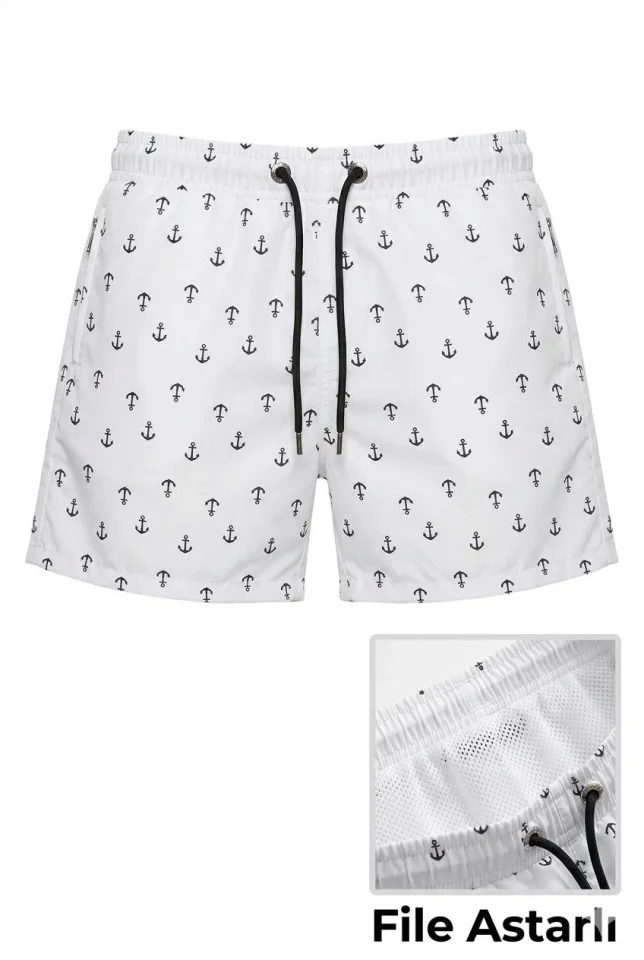 Erkek Deniz Şortu Fermuarlı Cepli File Astarlı Hızlı Kuruyan Premium – Beyaz