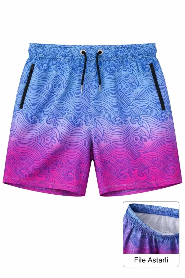 Erkek Deniz Şortu Fermuarlı Cepli File Astarlı Hızlı Kuruyan Premium – Çok Renkli