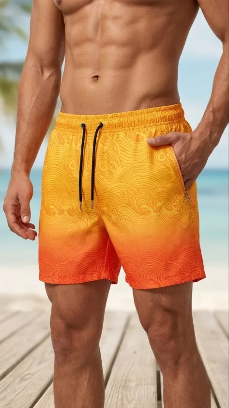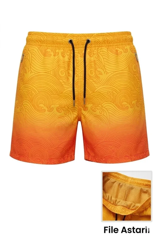 Erkek Deniz Şortu Fermuarlı Cepli File Astarlı Hızlı Kuruyan Premium – Turuncu