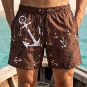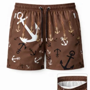 Erkek Deniz Şortu Fermuarlı Cepli File Astarlı Hızlı Kuruyan Premium – Kahverengi