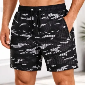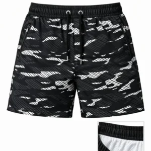 Erkek Deniz Şortu Fermuarlı Cepli File Astarlı Hızlı Kuruyan Premium – Siyah