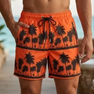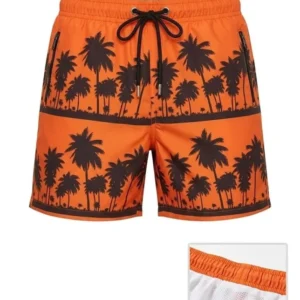 Erkek Deniz Şortu Fermuarlı Cepli File Astarlı – Turuncu