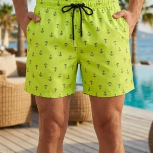 Erkek Deniz Şortu Fermuarlı Cepli File Astarlı Hızlı Kuruyan Premium – Neon Yeşili