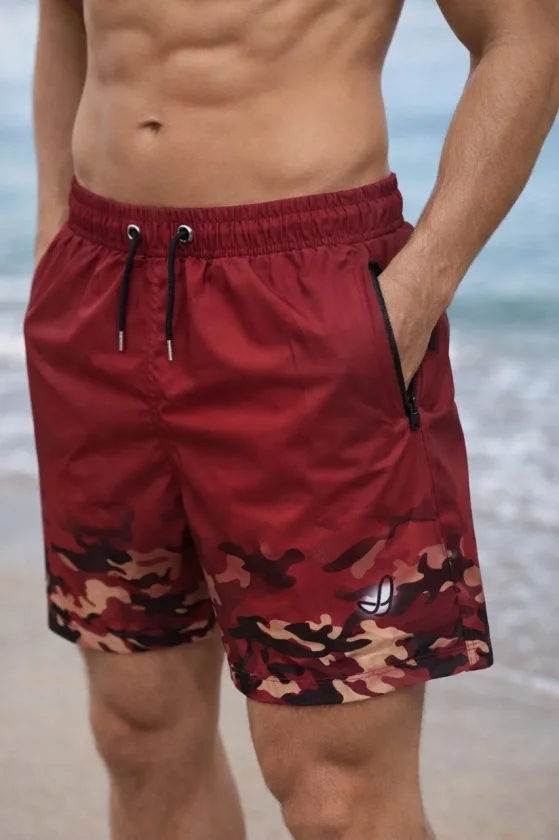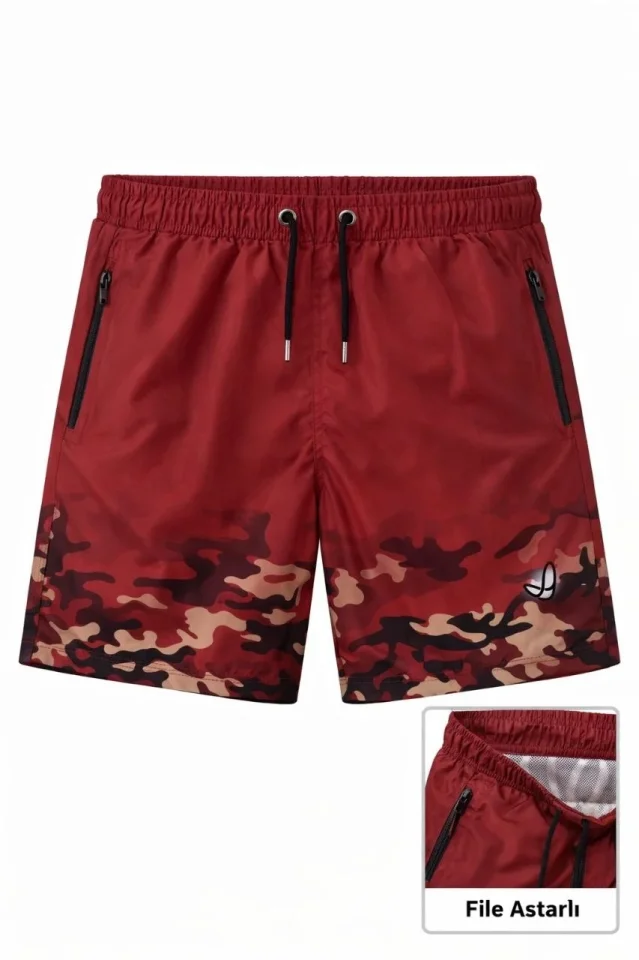 Erkek Deniz Şortu Fermuarlı Cepli File Astarlı Hızlı Kuruyan Premium – Kırmızı