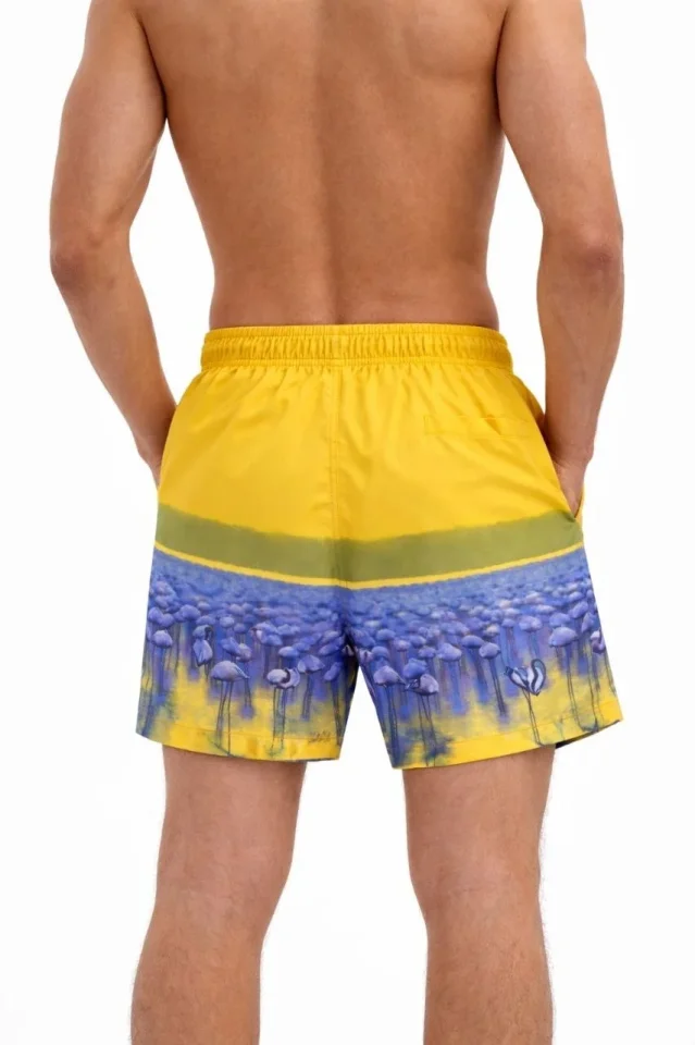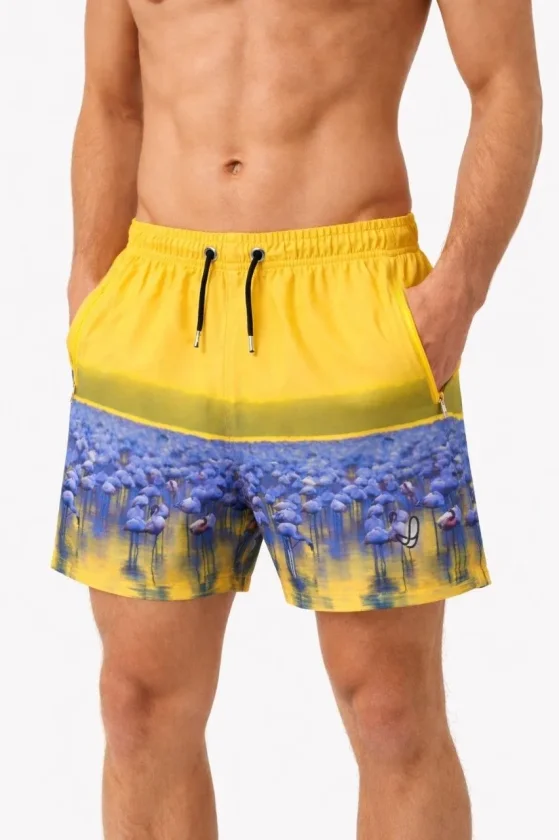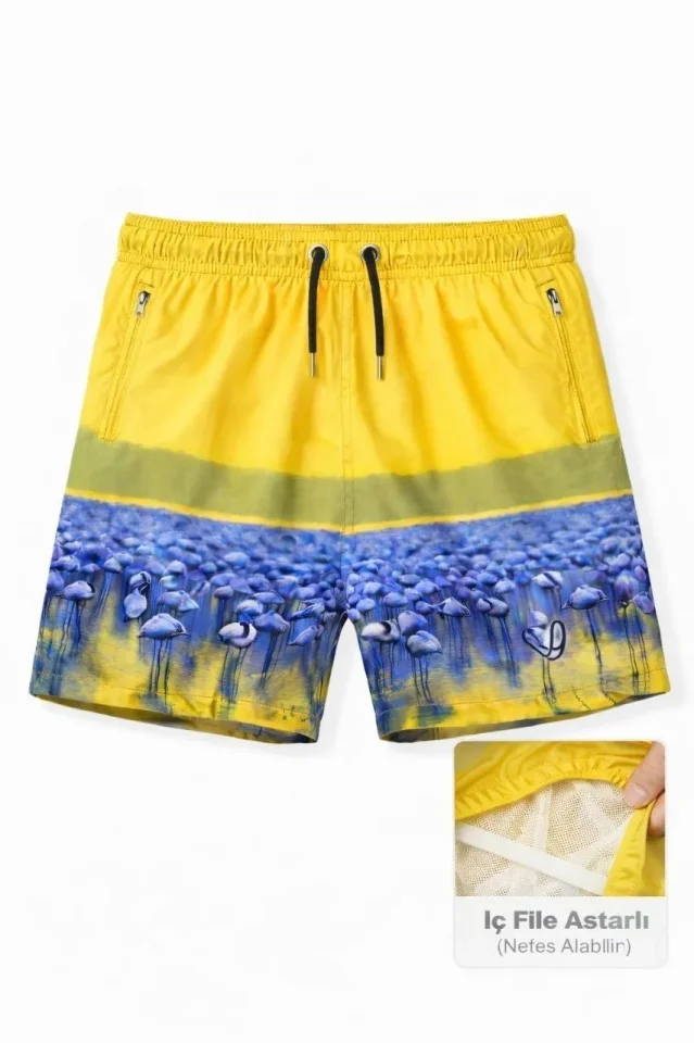Erkek Deniz Şortu Fermuarlı Cepli File Astarlı Hızlı Kuruyan Premium – Sarı