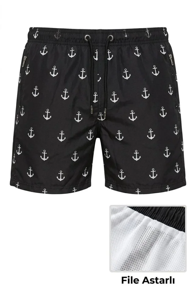 Erkek Deniz Şortu Fermuarlı Cepli File Astarlı Hızlı Kuruyan Premium – Siyah