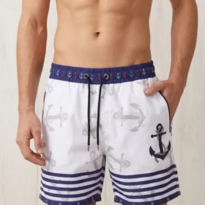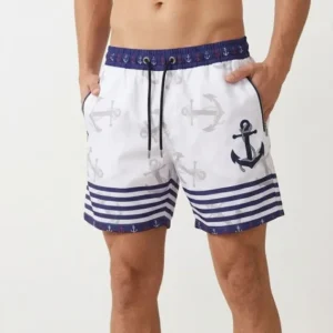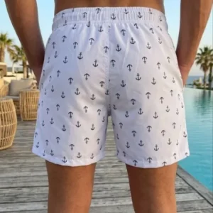 Erkek Deniz Şortu Fermuarlı Cepli File Astarlı Hızlı Kuruyan Premium – Beyaz
