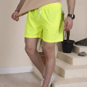 Erkek Deniz Şortu Fermuarlı Cepli File Astarlı Hızlı Kuruyan Premium – Neon Yeşili