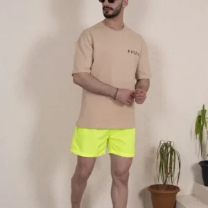 Erkek Deniz Şortu Fermuarlı Cepli File Astarlı – Neon Yeşili