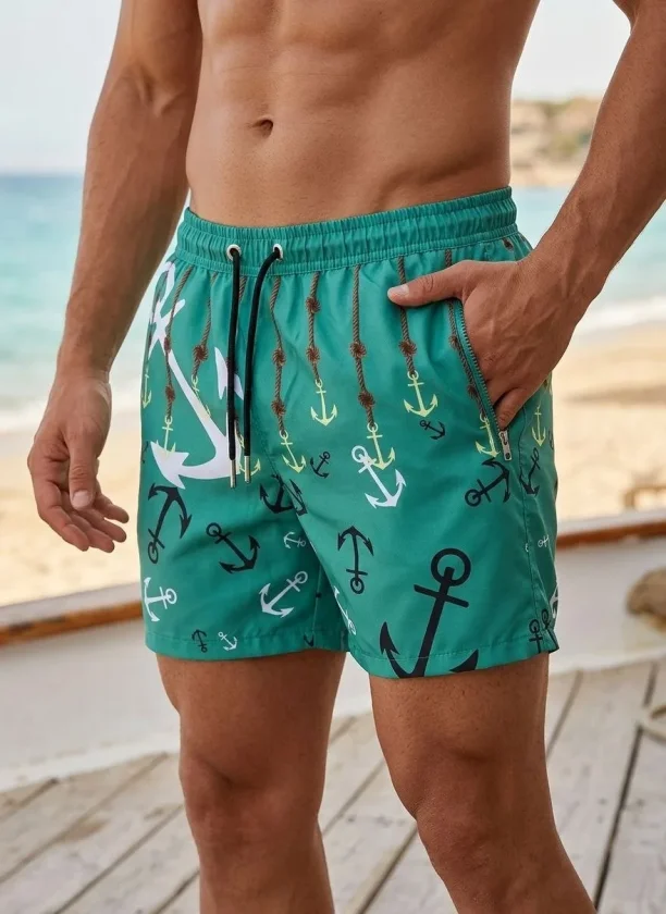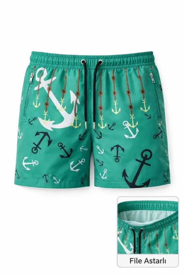 Erkek Deniz Şortu Fermuarlı Cepli File Astarlı Hızlı Kuruyan Premium – Su Yeşili