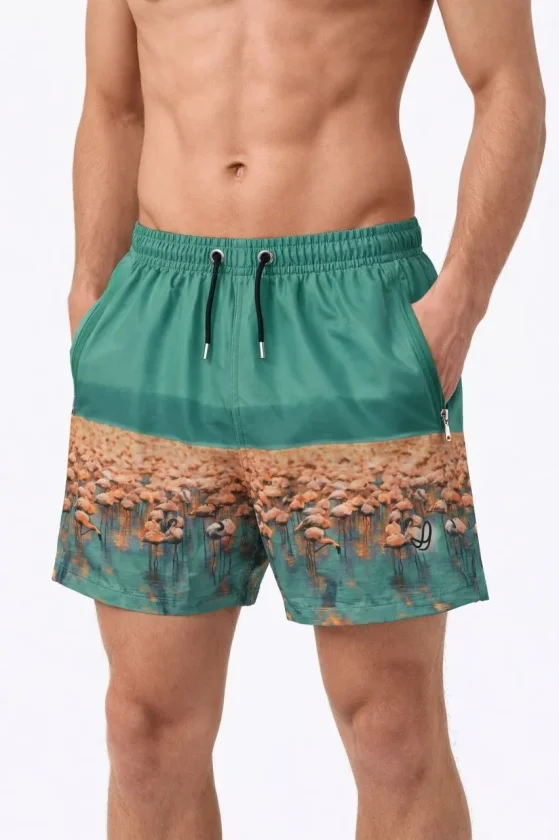 Erkek Deniz Şortu Fermuarlı Cepli File Astarlı Hızlı Kuruyan Premium – Su Yeşili