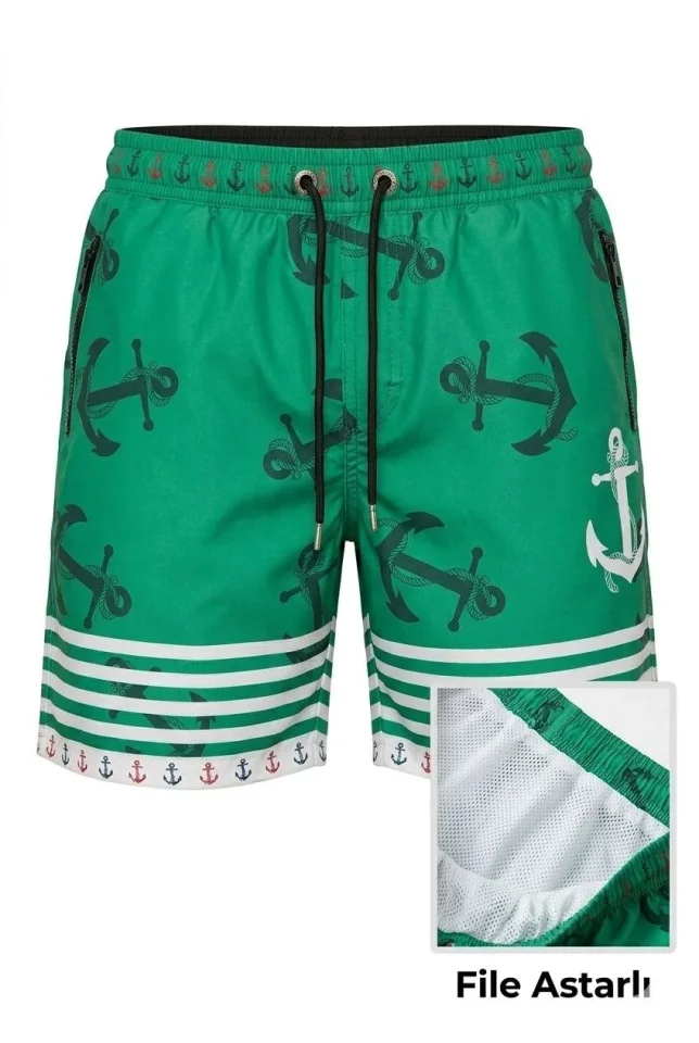 Erkek Deniz Şortu Fermuarlı Cepli File Astarlı Hızlı Kuruyan Premium – Su Yeşili