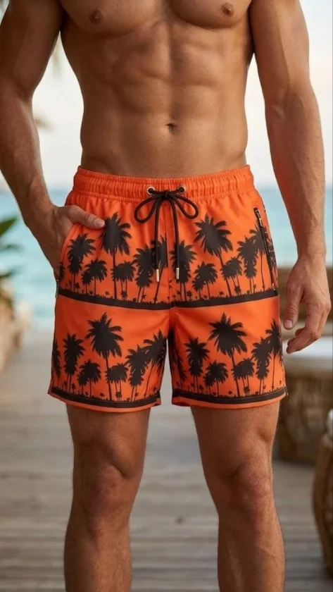 Erkek Deniz Şortu Fermuarlı Cepli File Astarlı Hızlı Kuruyan Premium – Turuncu