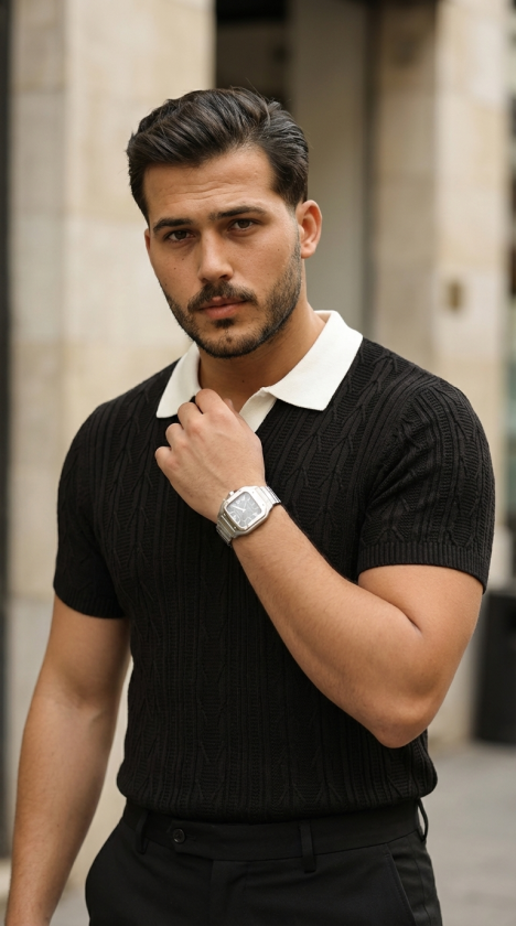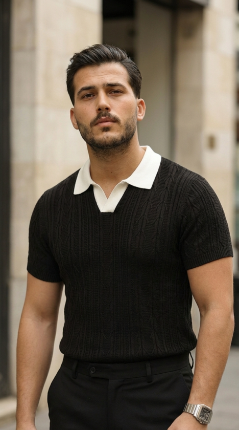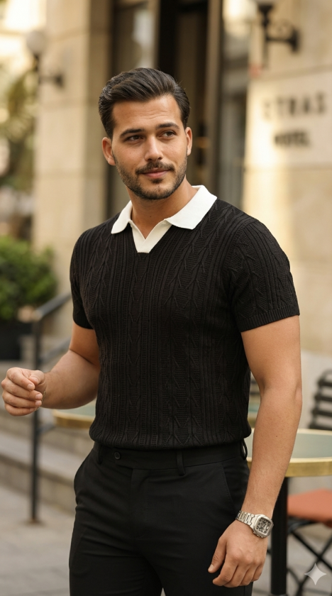 Erkek Örgü Desenli Renkli Kısa Kollu Triko Tişört