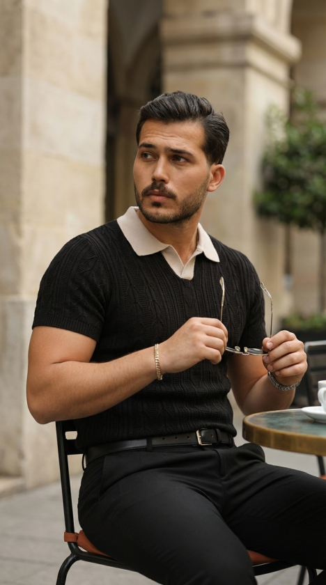 Erkek Desenli Kısa Kollu Triko Tişört – %100 Pamuk Akrilik