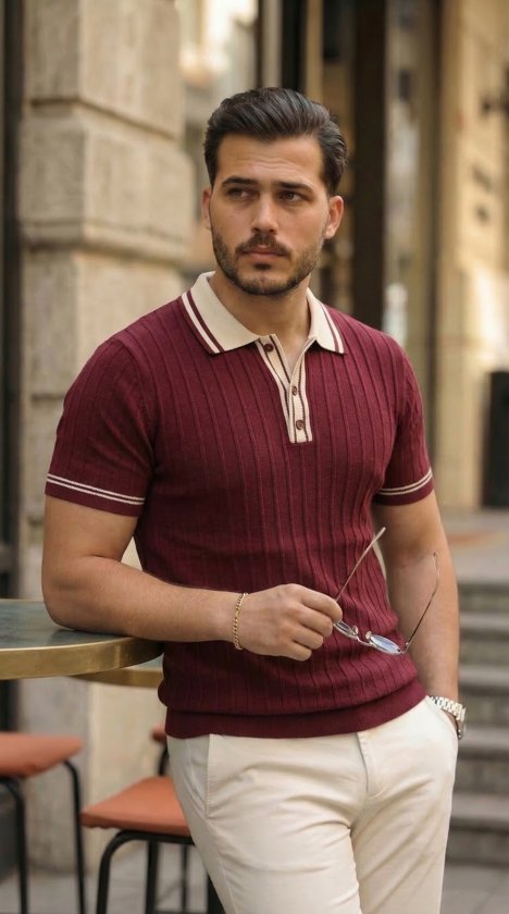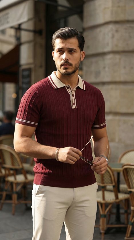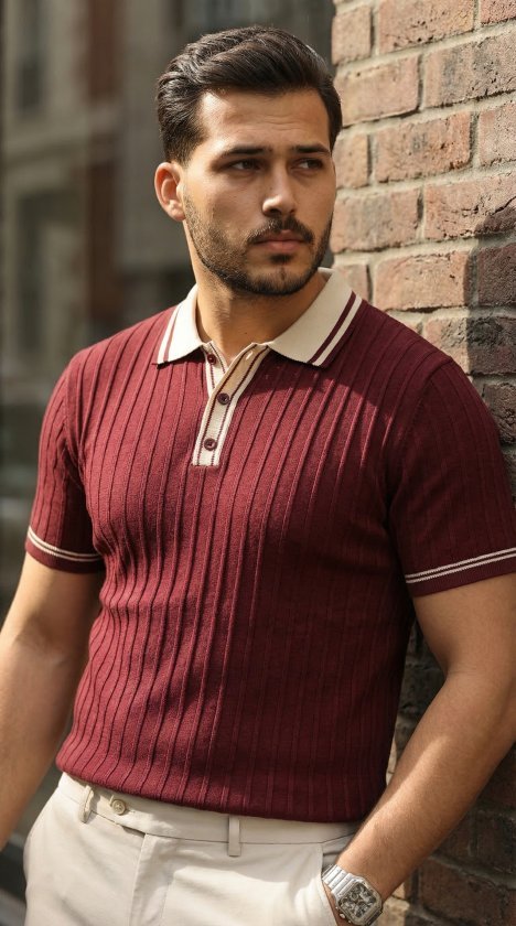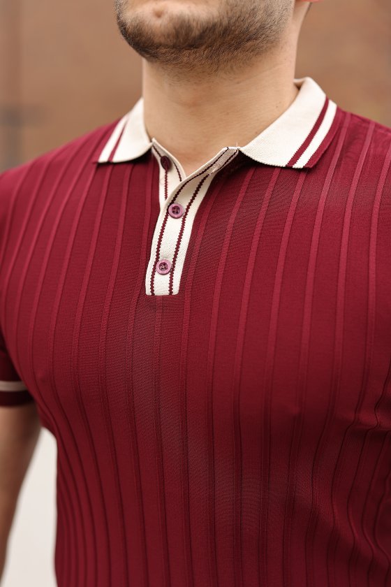 Erkek Düğme Yakalı Kontrast Yaka Triko Tişört