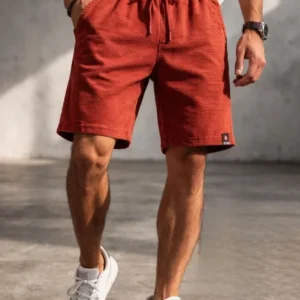 Erkek Otoban Dokuma Şort Beli Lastikli Bağcıklı, Cepli, Rahat Kesim Günlük Yazlık Şort – Turuncu