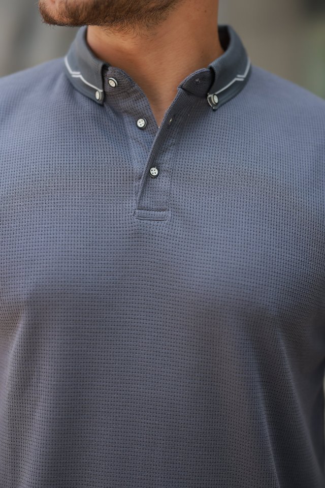 Erkek Düğmeli Yaka Waffle Kumaş Kısa Kollu Tişört