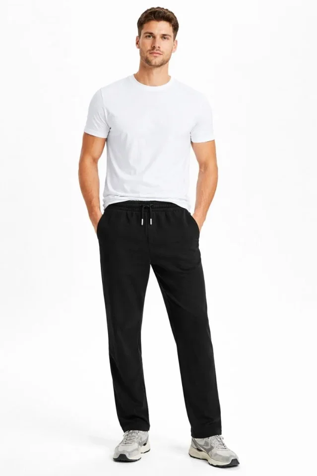 Erkek Düz Paça Beli Lastikli İpli Günlük Spor Eşofman Altı Rahat Fit – Siyah