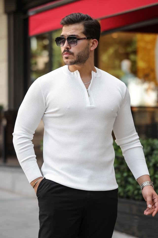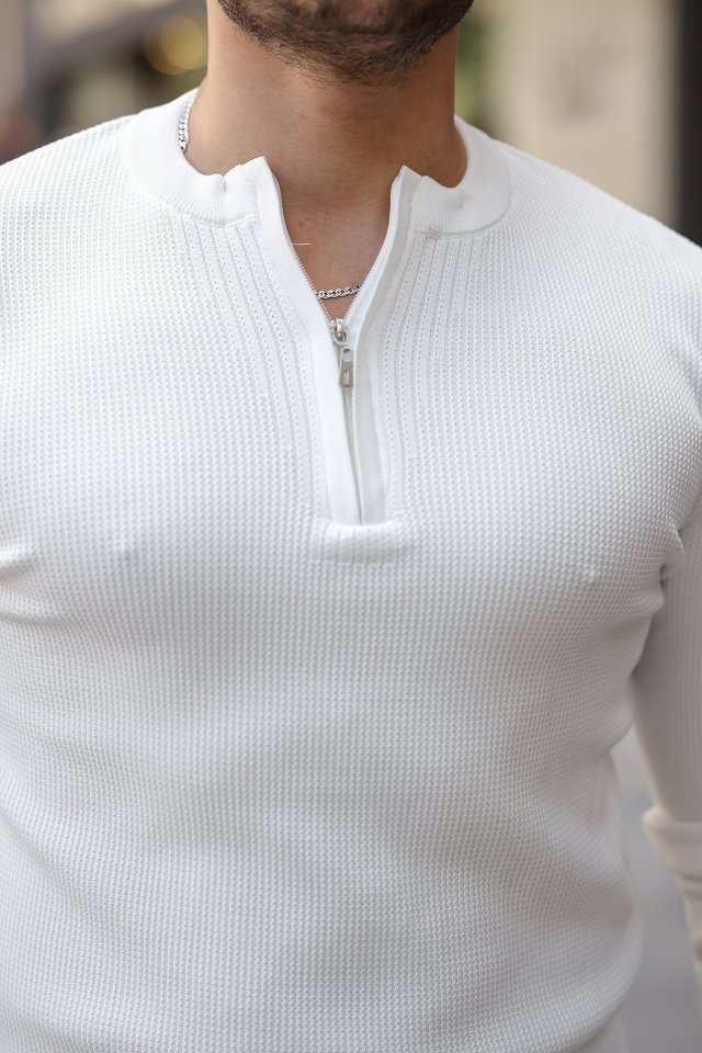Erkek Fermuarlı Bisiklet Yaka Dokulu Uzun Kollu Triko