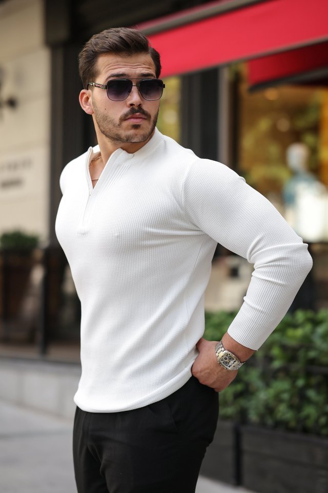 Erkek Yarım Balıkçı Yaka Kabartma Desenli Triko