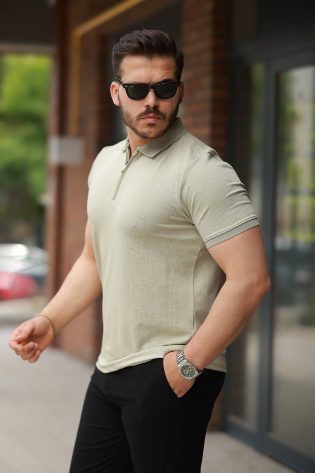 Erkek Fermuarlı Yaka Kısa Kollu Tişört