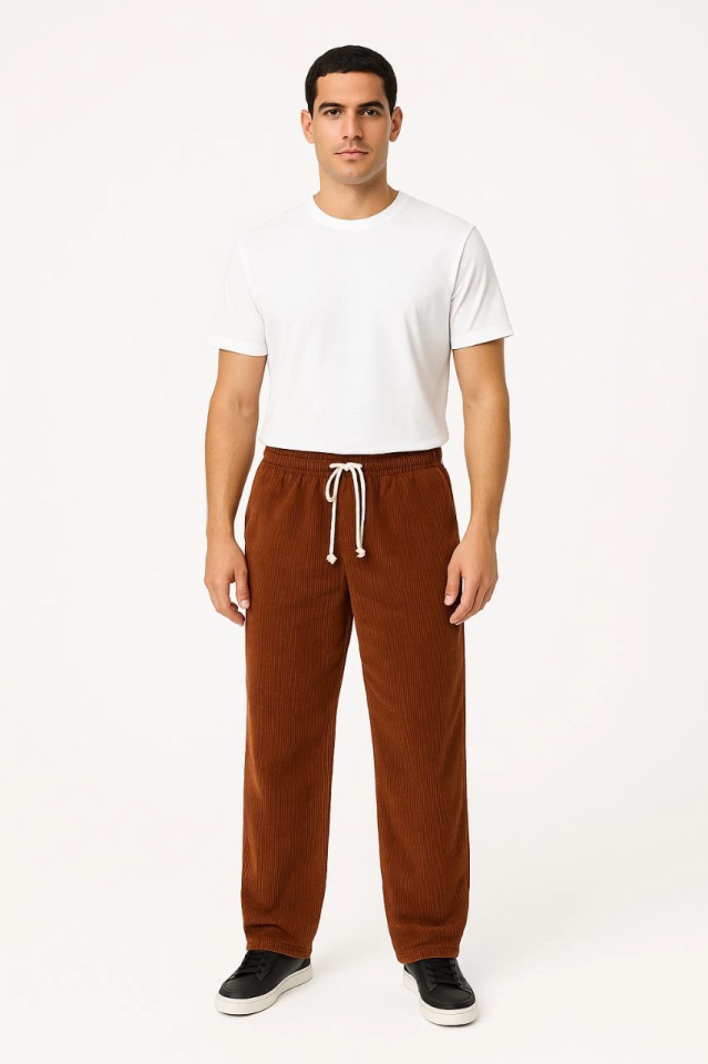 Erkek Fitilli Kadife Cepli Buggy Pantolon Oversize Rahat Kalıp – Kahverengi