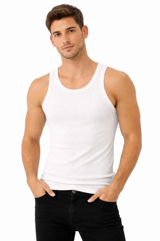 Erkek Fitilli Likralı Kaşkorse Atlet Vücuda Oturan Basic Şıklık – Beyaz
